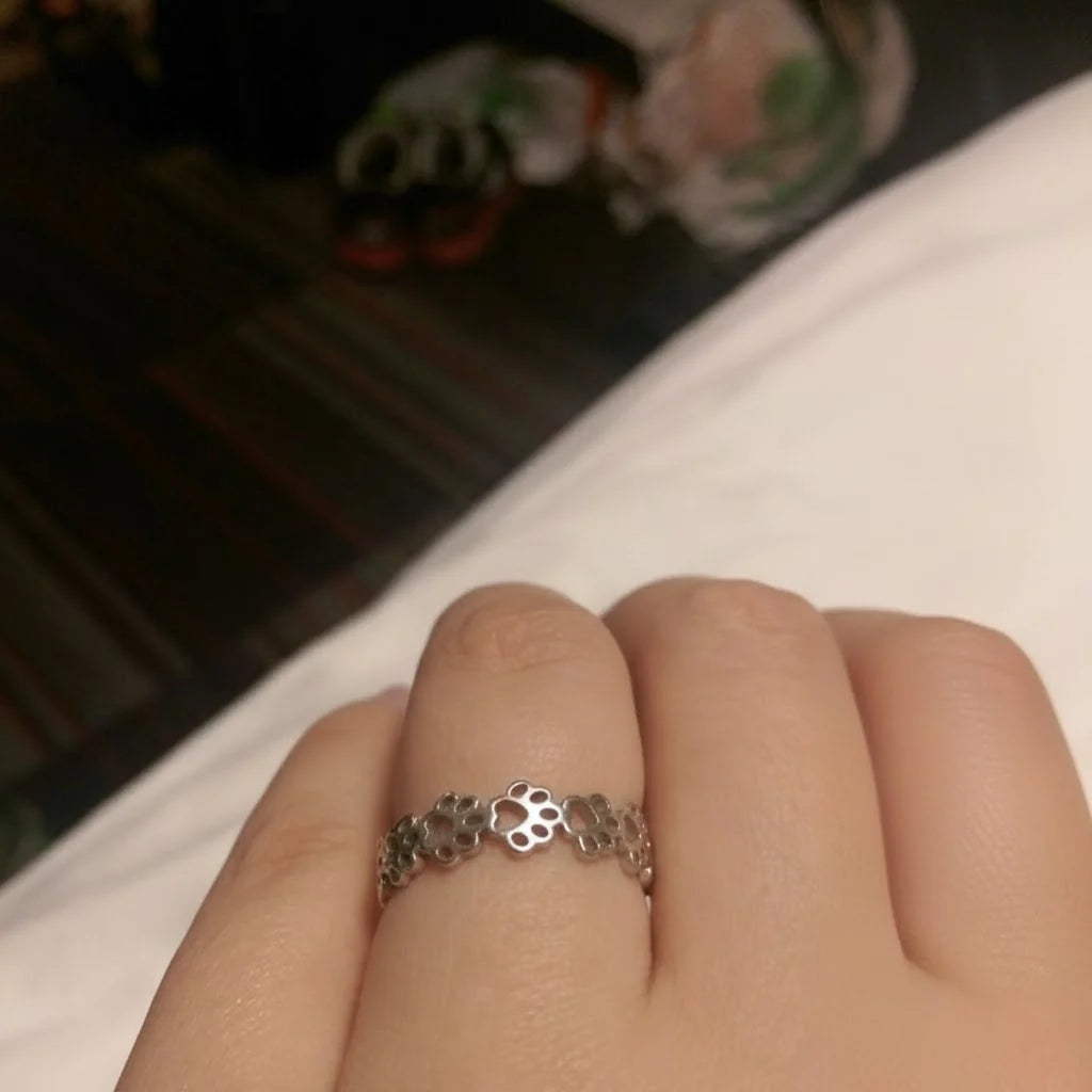 This ring is so delicate and beautiful in person. The paw design is detailed but subtle, and it feels surprisingly sturdy. It arrived earlier than expected and fit perfectly right out of the box. Such a lovely piece for anyone who adores their pets.