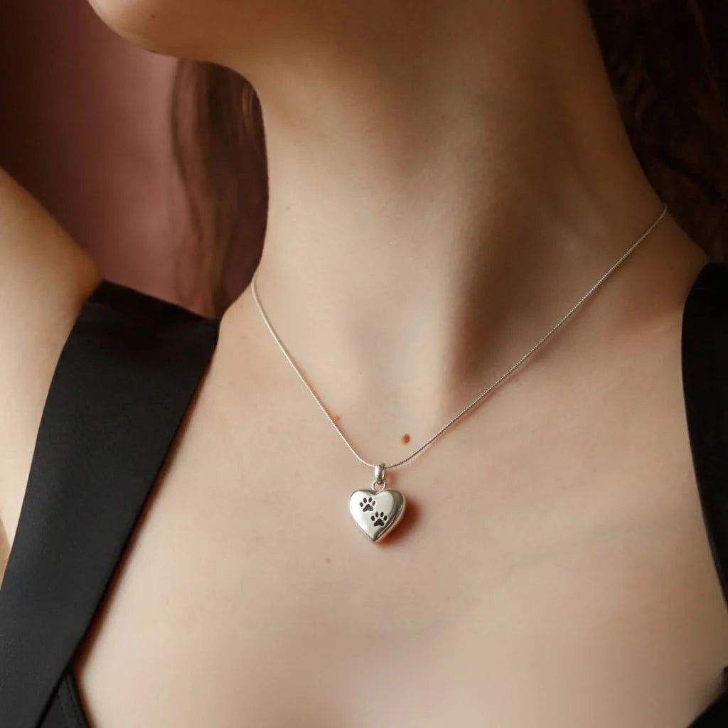 This necklace means more to me than I expected. The heart pendant has such a beautiful shine, and the little paw detail is perfect. It arrived sooner than estimated and came in lovely packaging. I bought it as a keepsake and it truly feels special.