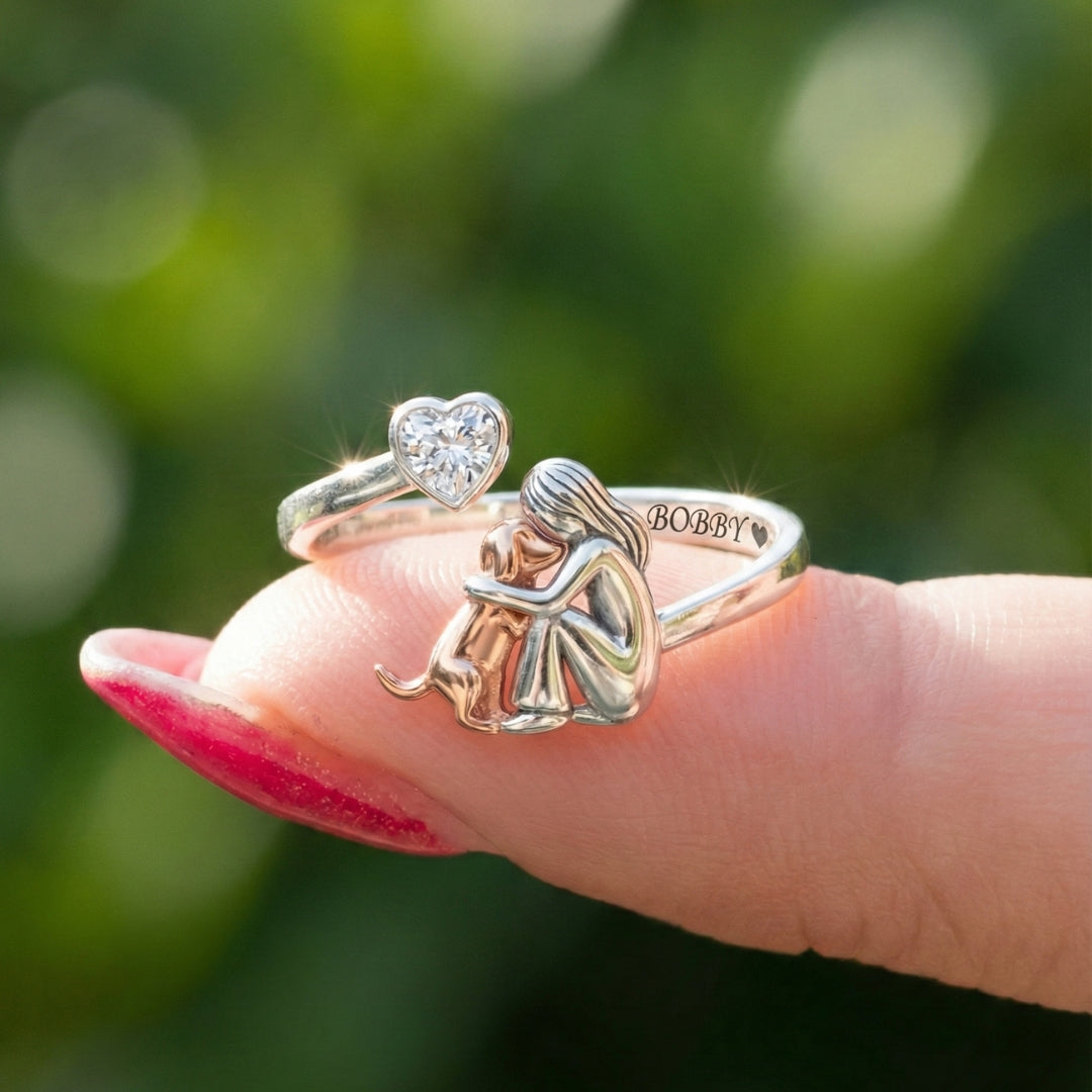 Beautifully crafted with a sparkling zirconia heart and a touching dog-hug silhouette, this meaningful ring captures the feeling of holding your best friend close — even when they’re no longer by your side. With free engraving included, you can personalize it with your fur baby’s name as a daily reminder that their paws may have left this world, but their love and memory stay wrapped around your finger forever.