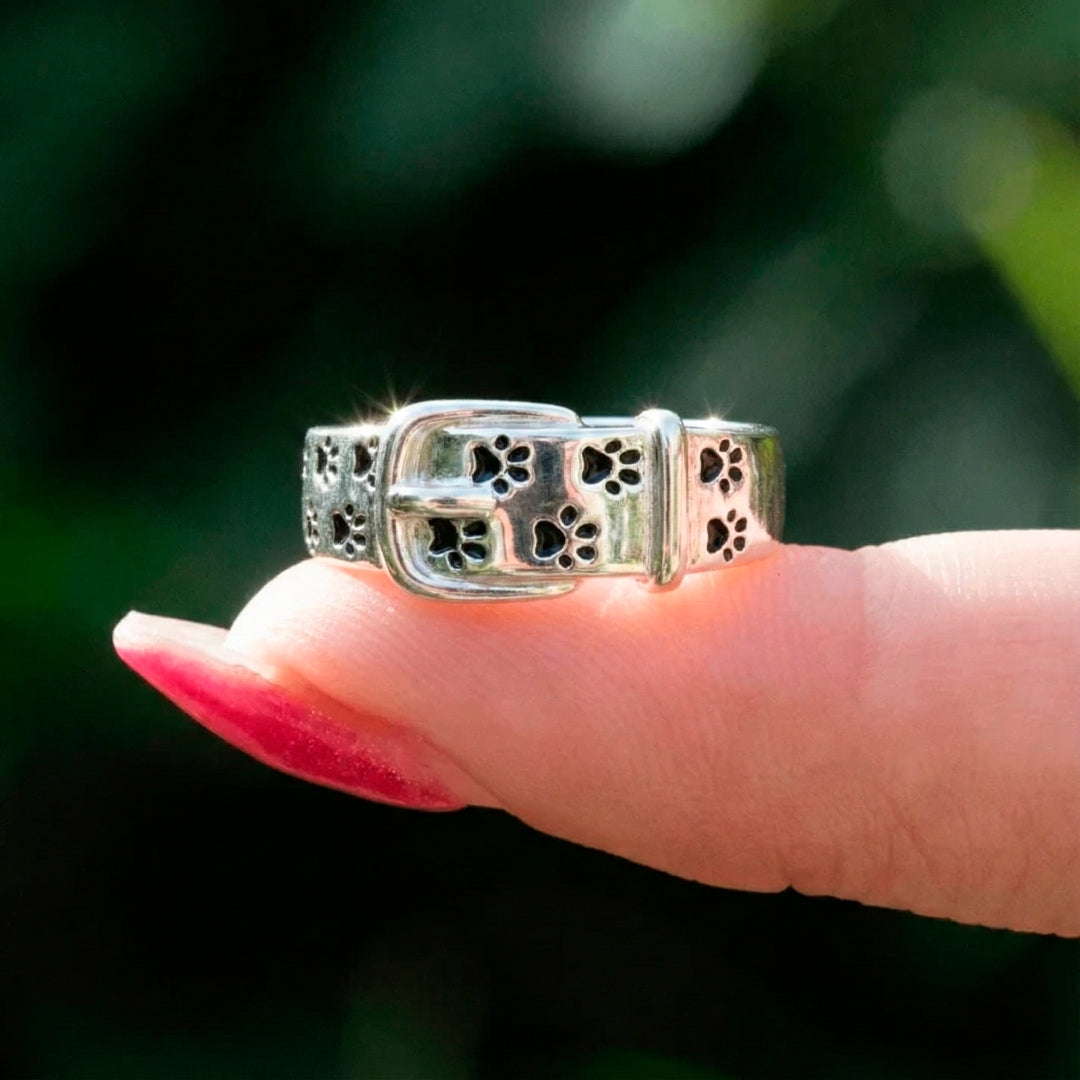 This ring is even nicer than I expected. The little paw details are so clear, the buckle design is adorable, and it feels really solid on the finger. Shipping was quicker than estimated, and it came beautifully packed. Such a meaningful piece for pet lovers.”